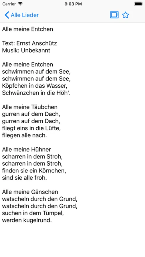 Das Liederbuch kann mit einem einzigen Tap SUCHEN AUF YOUTUBE die meisten Lieder finden. Das ist eine lustige Weise um die meisten berühmten Lieder zu finden.