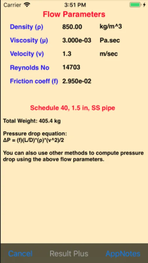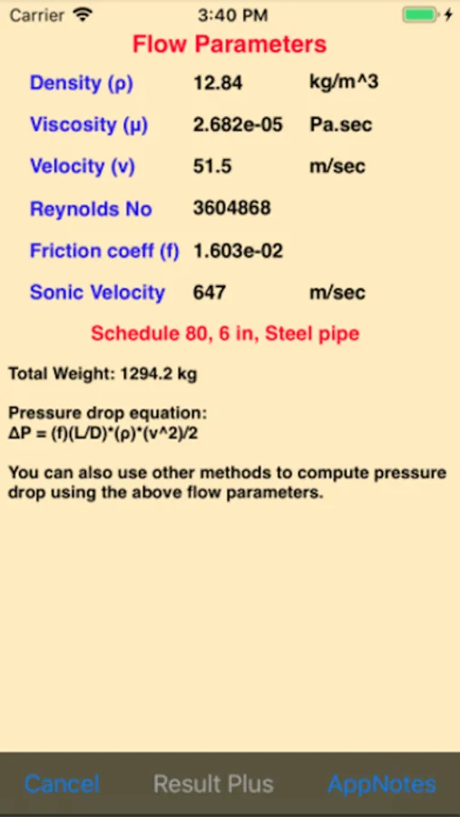 In addition, fluids that are not in the list, users can create a custom fluid with property data that can be saved and compute the pressure loss using the model provided in this app. Pressure loss is computed using Darcy’s equation, which gives a good estimate for both liquid and gases. For gases, the method is valid if the fluid velocity is within 40% of its sonic velocity. Also this app provides result of different flow parameters used in the computation of pressure loss.