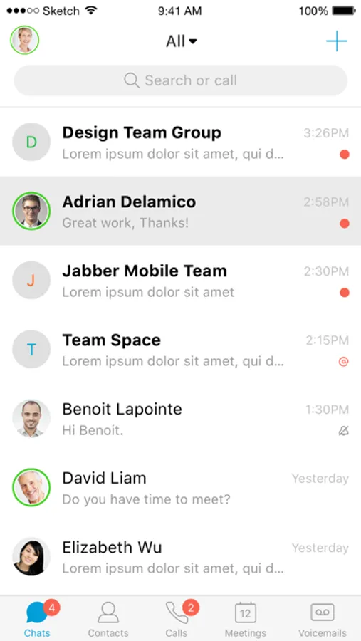 Cisco Jabber™ for iPhone and iPad is a collaboration application that provides presence, instant messaging (IM), voice, voice messaging, and video calling capabilities on Apple iPhone, iPad, iPod touch, and Apple Watch. Escalate your Jabber calls into multi-party conferencing with Cisco WebEx® Meetings. This integrated collaboration experience works with both on premise and cloud-based collaboration architectures.