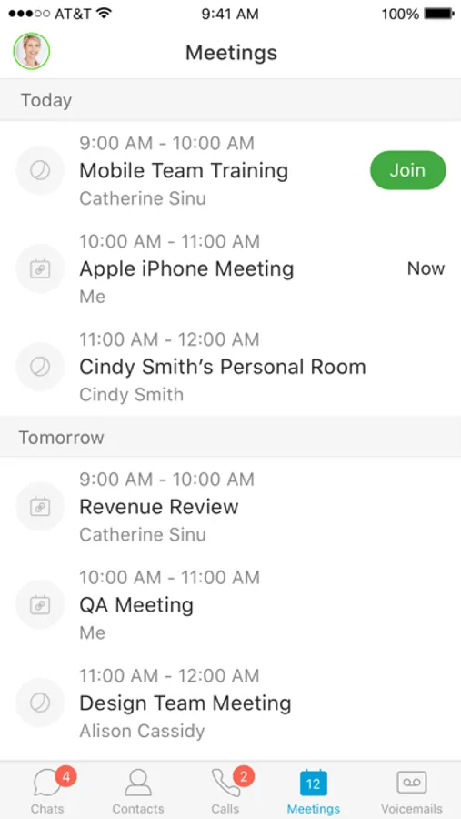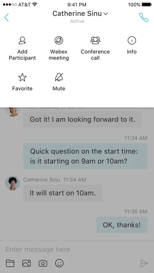 • One-tap escalation to WebEx meetings (cross-launches the Cisco WebEx® Meetings application)