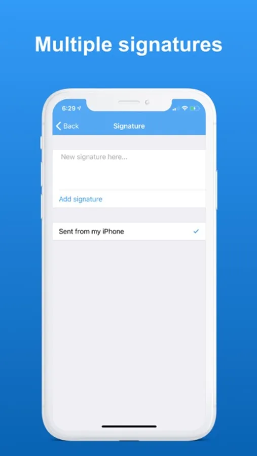 You can create as many signatures as needed. Just select the one you want to use and whenever you send a text from our app, your signature will be appended at the end!