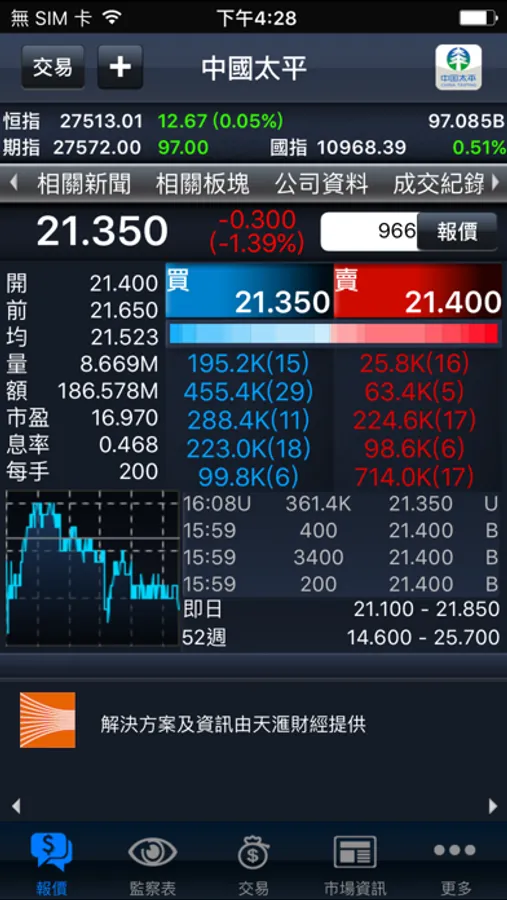 -即時串流股票報價:網羅重要市場資訊,包括實時報價、資金流向、成交紀錄、技術分析及基本面數據、相關輪證及相關上市公司;