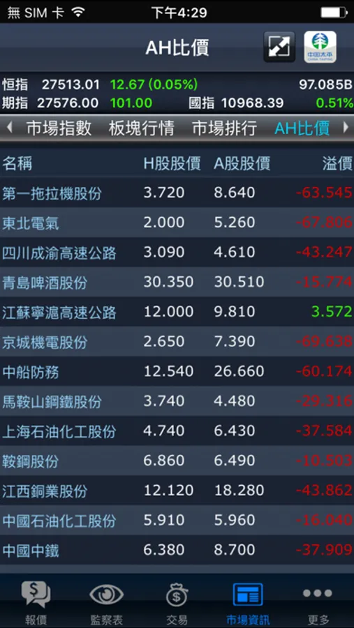 -A+H報價:悉數包含A+H股票報價,中港互動了然在胸;
