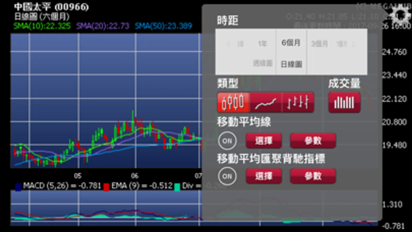 -專業圖表:可橫向及直向顯示及切換20個時段,兼備20種技術分析;