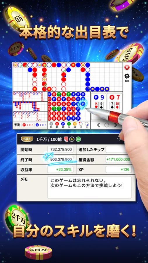 ※ 本アプリケーションは現金でのギャンブルや現金または賞金を獲得する機会は提供しておりません。ソーシャルゲームでの上達や勝利はリアルマネー表形式によるギャンブルでの成功を保証するものではありません。