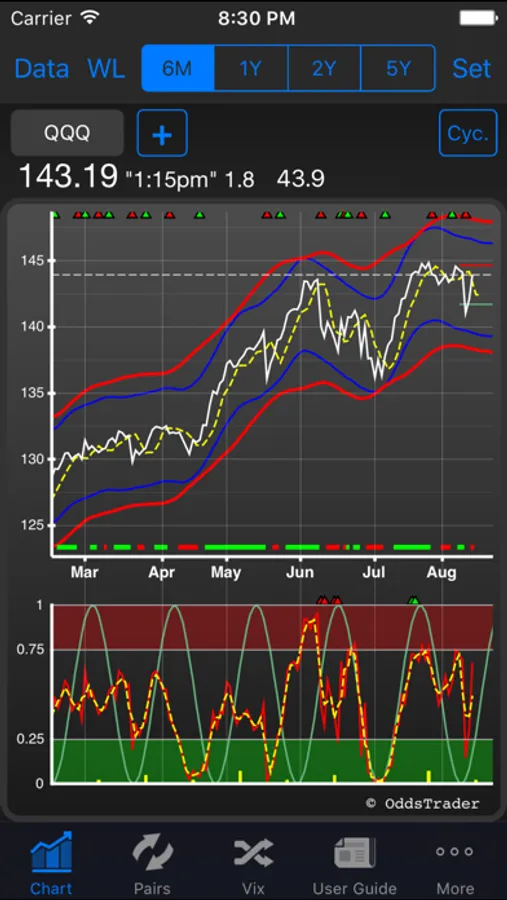 Here you will find a host of exclusive features not available in some of the most sophisticated and expensive professional stock charting programs. Use this app to invest with the trend, to identify the dominant cycle, to find accurate price and time targets, and hidden support and resistance levels, to receive timely and actionable trading signals, and to manage your portfolio risk properly. In addition, OddsTrader automatically quantifies key aspects of the decision making process related to your trading.