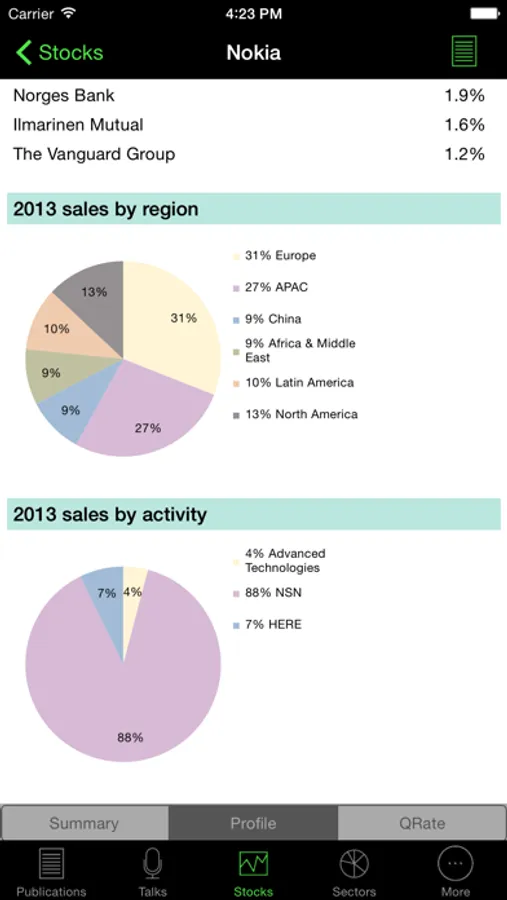 - Multiple research analytics, all available offline (e.g. peer-group comparison tables, detailed financial grids, company profiles, financial calendars)