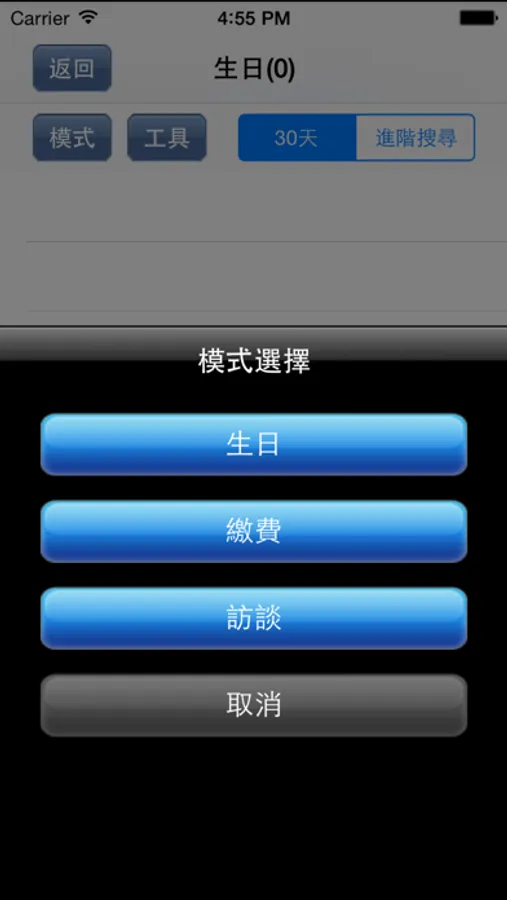 利用mAgent有效率地查詢客戶訪談安排,讓您輕鬆管理行程。可利用「生日」、「繳費」以及「訪談」等模式,快速找出需要安排行程的客戶.