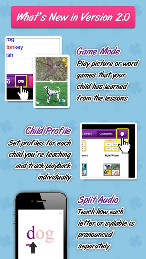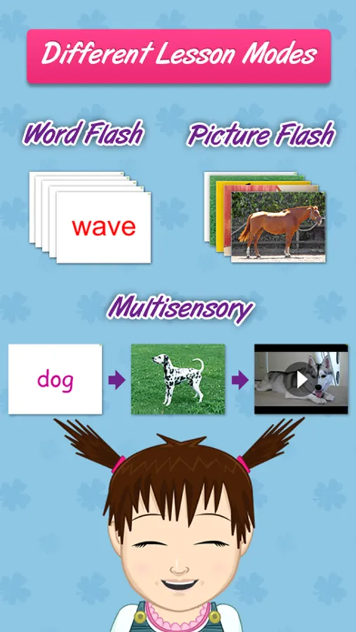 Words are shown in different fonts and colors, and with different pictures, voices and video each time! This variety makes it much more engaging for your child, and helps to give your child a much more comprehensive meaning of the words.