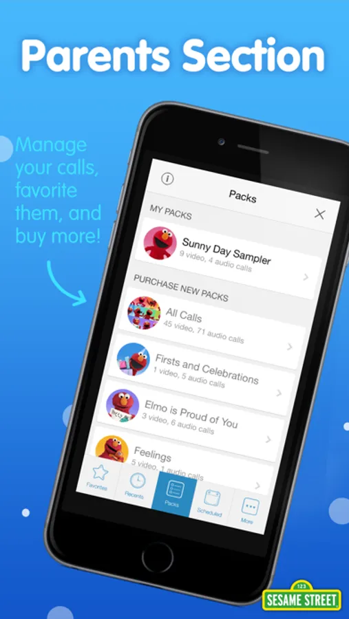 The Sunny Day Sampler Call Pack comes with your purchase of Elmo Calls. This pack includes 13 fun-filled calls for you and your child to enjoy right away! For even more calls, download "Playdate with Elmo" for FREE, plus you can buy additional Call Packs easily right within the app: