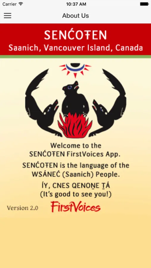 The SENĆOŦEN app is a media-rich bilingual dictionary and phrase collection comprised of words and phrases archived at the online Aboriginal language database FirstVoices.com. Word and phrase definitions are illustrated with audio recordings, images and videos. Editing features allow users to customize content by replacing default multimedia with personal pictures, videos and sounds using either the camera and microphone built into their device or images from their onboard photo collection.