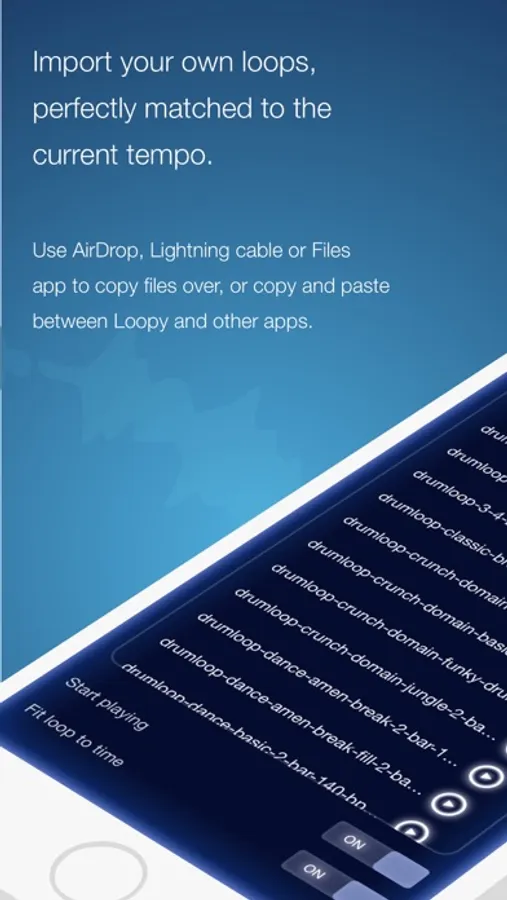 - Import loops from your computer via iTunes, with support for AIFF, WAV, MP3, M4A, CAF and more.