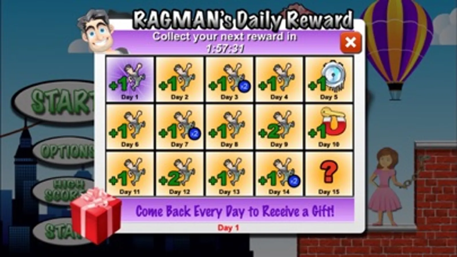 He must save the girl! He hardly knows her, but she is beautiful and that’s good enough for him. She’s been taken hostage and chained up! The keys to unlock her are floating nearby attached to balloons. Rag Man must get at least 1 key to unlock and free the girl. Nothing will get in his way! Well, maybe a few things ;-)