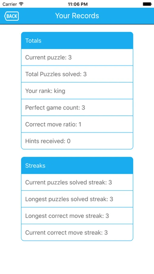 - stats that record achievements as you solve puzzles