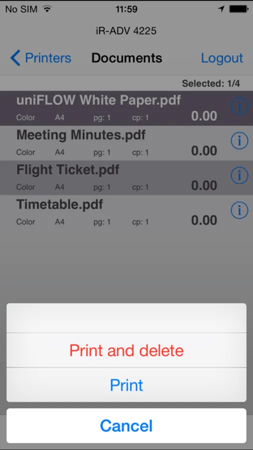 The uniFLOW mobile printing app allows you to send documents to a uniFLOW controlled printer.