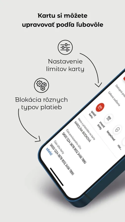 5. Zjednoduší vám správu platobných kariet – nastavenie limitov, zmena PIN kódu alebo rýchle zablokovanie karty.