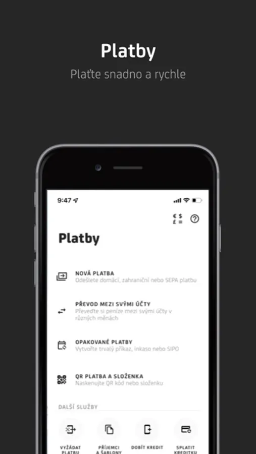 Smart Banking also includes Smart Key, which you can use to authorize payments and other orders entered in Online Banking, both online and offline. In online mode using push notifications and in offline mode by scanning QR codes. You can also easily change your credentials. In case you forget your credentials, you can reset them using a photo of your ID and a selfie video. The application itself will guide you through the reset.