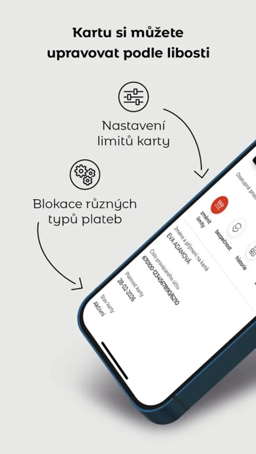 5. Usnadní vám správu platebních karet – nastavení limitů, změny PINu nebo rychlého zablokování karty.