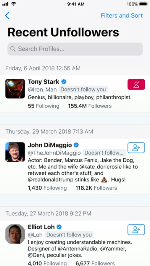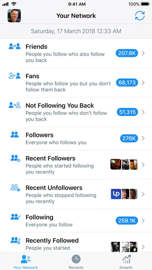 "This is the ‘all you’ll ever need App’ — I’ve been using this App since it started and it’s by far the most reliable source to see who’s new, and Who’s unfollowed you, and when. You can sit back and let the app do all the legwork."