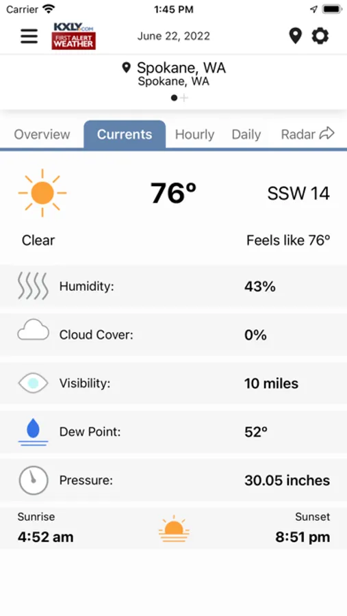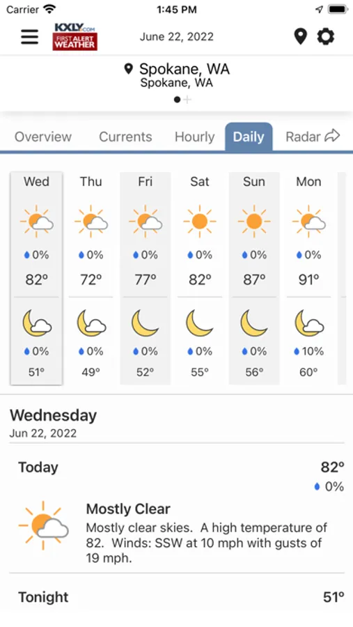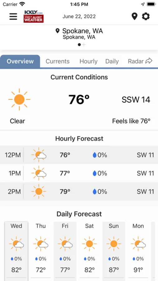 • Detailed, up-to-date forecast provided by your local KXLY First Alert weather team