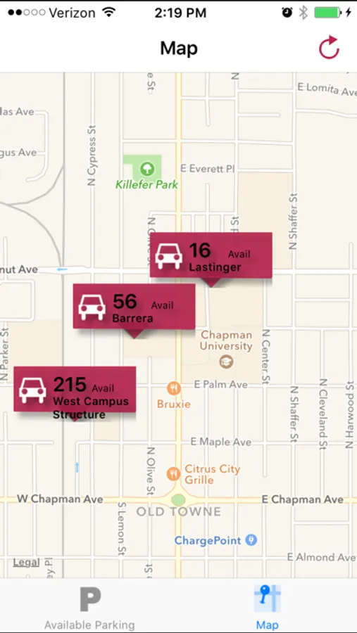 Chapman's Parking App gives you up-to-the minute information on two of our campus parking lots. See the number of spots available in the Lastinger and Barrera parking structures.