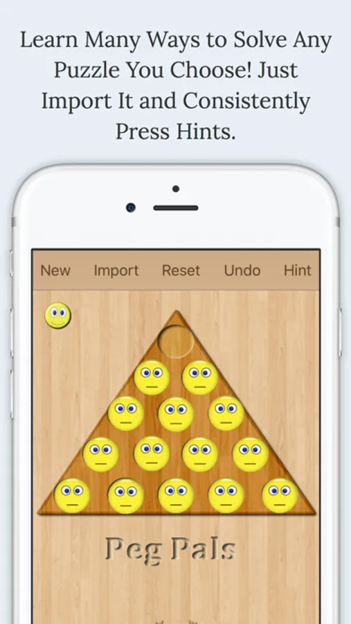 Peg Pals provides thousands of puzzles based on the classic triangular peg puzzle theme. BUT with clever twists and unlimited hints. You can learn how to solve any puzzle. You can set up your own puzzles if you prefer.