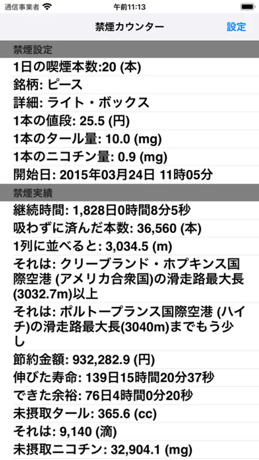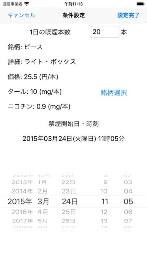入力するのは、1日の喫煙本数・禁煙開始日・