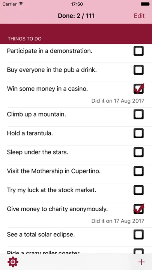 111 suggestions are already on the list but you can edit, delete or add you own things.