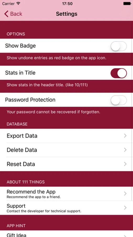 Your data belongs to you! You are able to export your data at any time and use it as a CSV file (a plain text file). Your data is not collected or transmitted!
