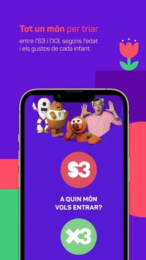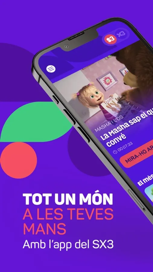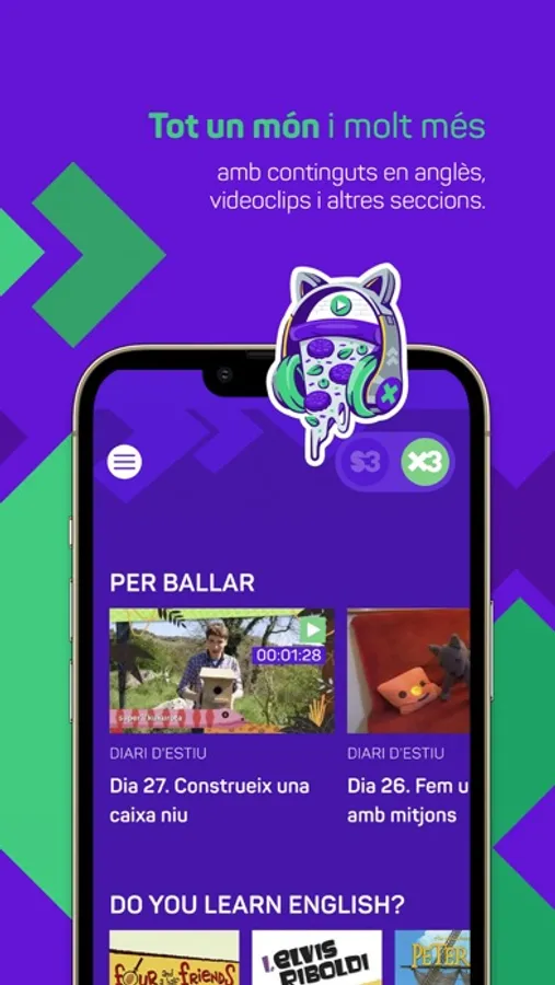 Al món S3 t’hi esperen el Mic, el Titó, els Uau Ka Kau i sèries com “Jasmine and Jambo”, “Numberblocks”, “Masha i l’os”, “Les tres bessones” i molts més amics que et faran cantar, ballar i gaudir... també en anglès!