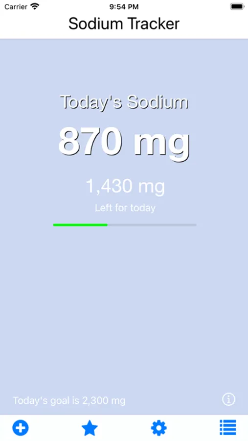 Sodium Tracker is a minimalist, clean and easy to use application for tracking your daily sodium intake. The National Institutes of Heath recommends you eat less than a teaspoon (2300 mg) of salt per day. Using nutrition labels, you can track your sodium intake throughout the day to make sure you're meeting your goal.