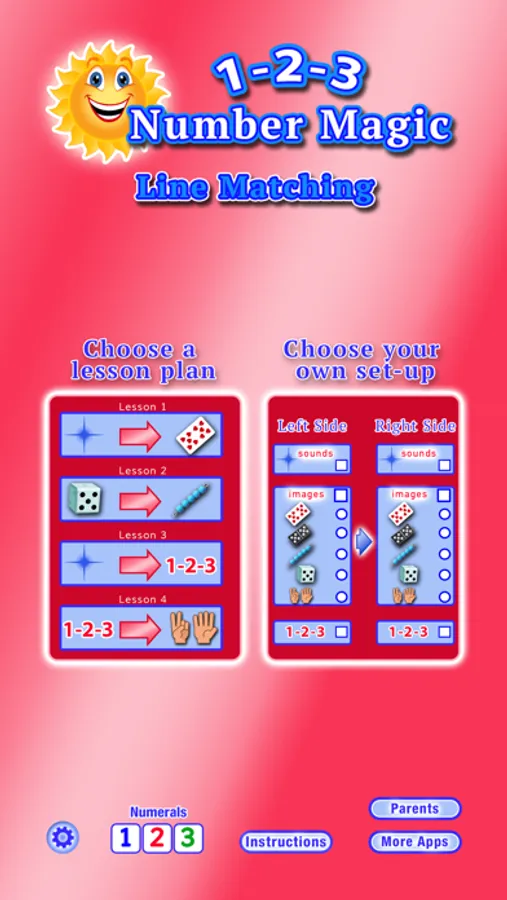This lesson helps your child to learn and reinforce the names of the numbers and match them to counted quantities. This app uses five sets of counters.