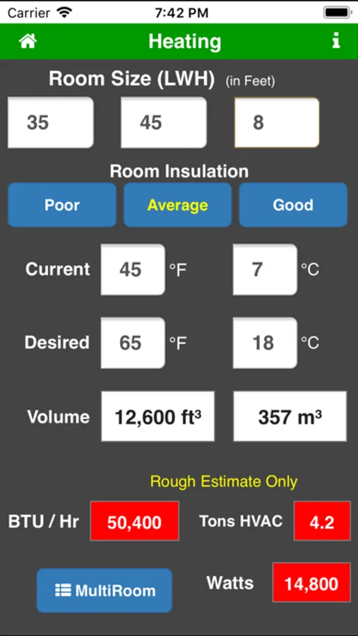 - Heating/Cooling: how many BTU's needed to heat or cool an area to a specific temperature
