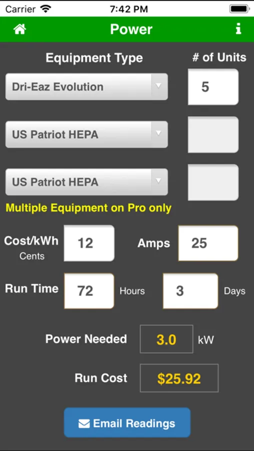 The Sycorp Calc app provides quick and easy access to a number of calculations used in Water Damage Restoration, Construction, HVAC and Indoor Air Quality industries. Easy to use, quick access for use on job sites. Great for water technicians, supervisors, and insurance adjusters. Based on IICRC formulas. Includes published specs on equipment from Dri-Eaz, Phoenix, Nikro, Jon Don, DryAir, B-Air, Viking, Santa Fe, Abatement and others.