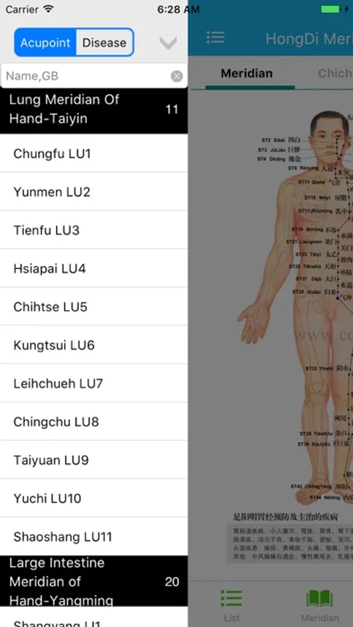 5. You can search acupoint by keyword, also you can search for related acupoints depending on the disease.
