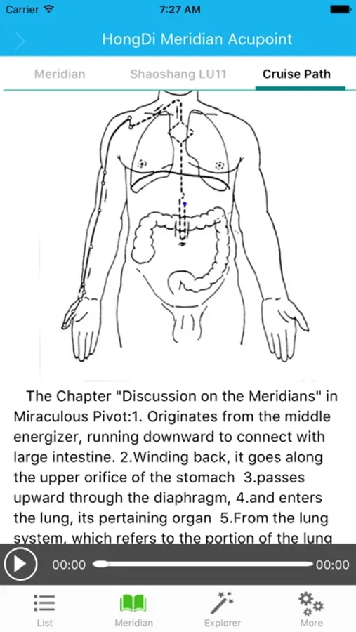 5.On the right of meridian picture, there are "Meridian Detail", "Hidden acupoints", "Meridian Channel" three buttons, which are very easy to operation.