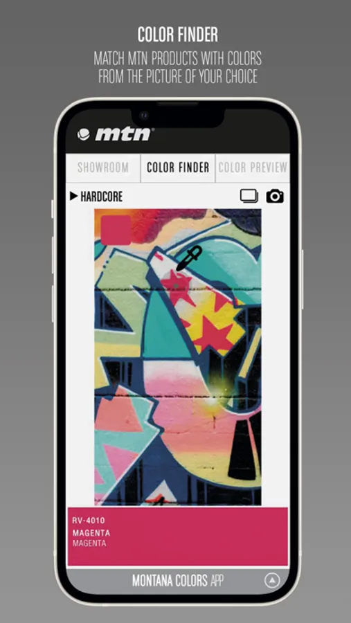 This option allows you to find up to three colors from any MTN line that are closest to the tone you select from an image. The image can be uploaded from your phone’s gallery or from a photo you take at that moment.