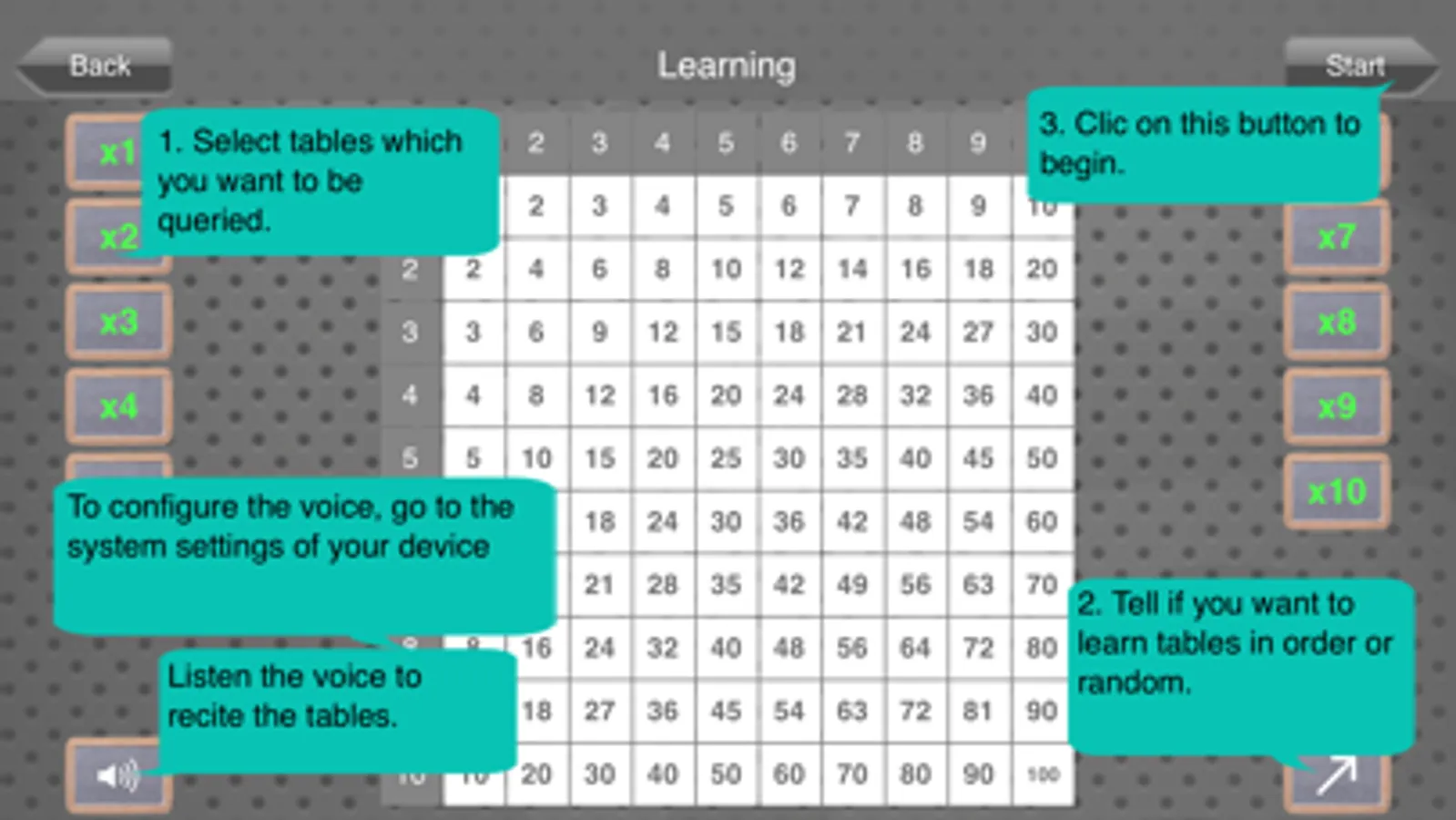 A learning mode is also available. It allows you to learn at their own rate your multiplication tables.