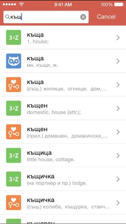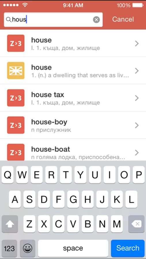 Search in all of them simultaneously. See search results while typing. Listen to English pronunciation. Create and manage your own list of words to learn, and many more cool features!