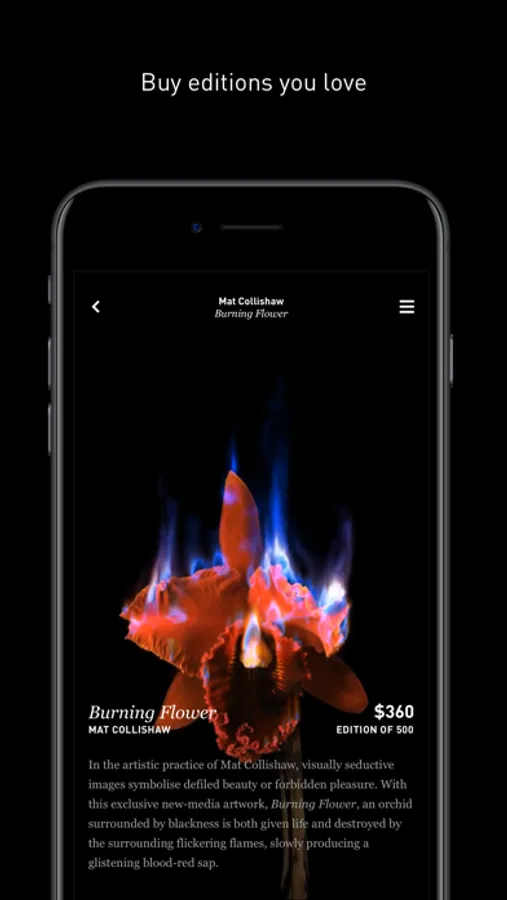 All artworks on Sedition are limited editions created entirely for screens and devices. Edition sizes range from unique works, to editions of several thousand - if the work you want is sold out, why not visit our site and check out the Trade section to see if another collector will sell it?