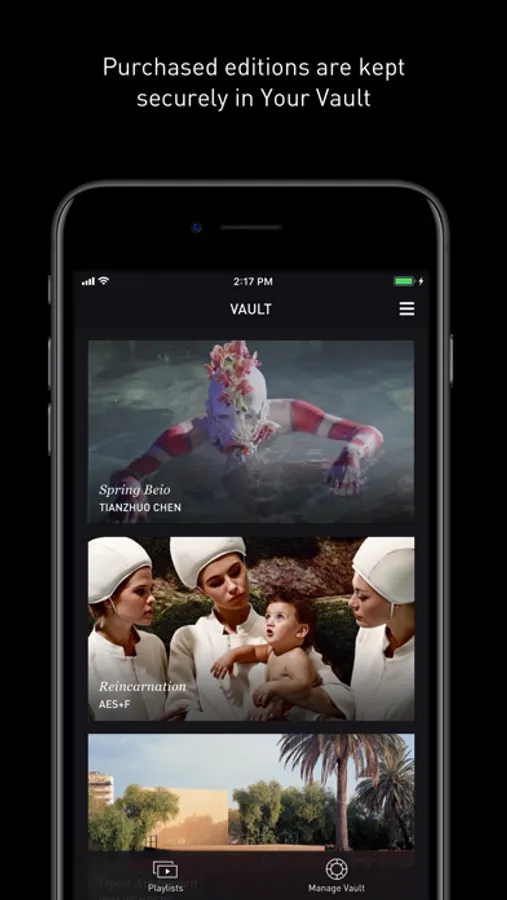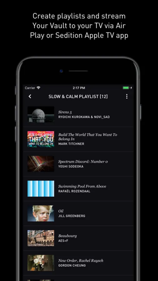 The Sedition app allows you to manage your digital collection - securely store artworks in your personal Vault, create playlists, share or gift works to friends, and download your artworks onto your device so you can enjoy viewing your collection with or without an internet connection.