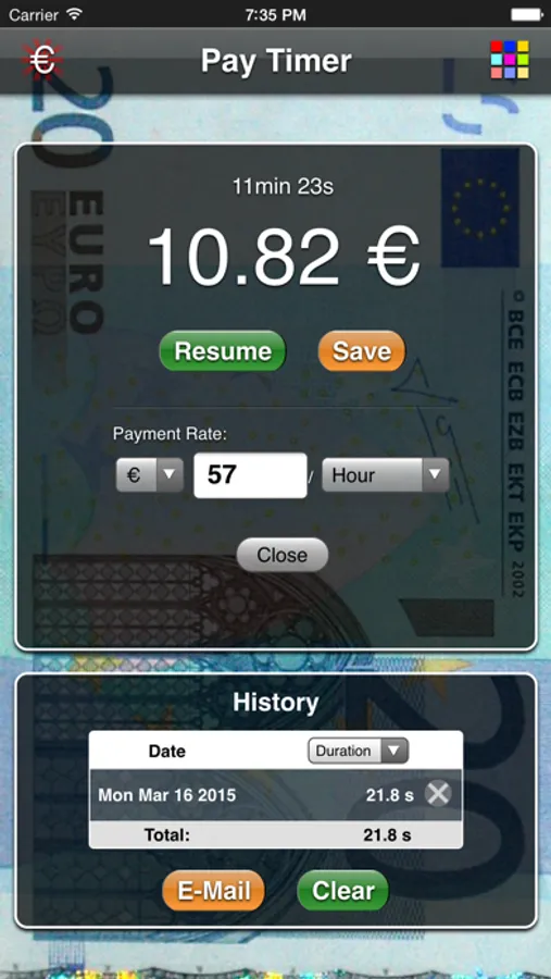 Measure the time you work and calculate your earnings. The timer keeps running even when you close the application. So there is no need to keep it open all the time.
