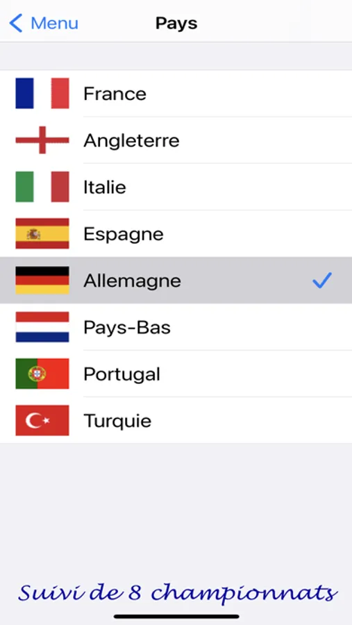 - Pays : les championnats de 8 principaux pays utilisés dans la grille loto foot 15 sont proposés.