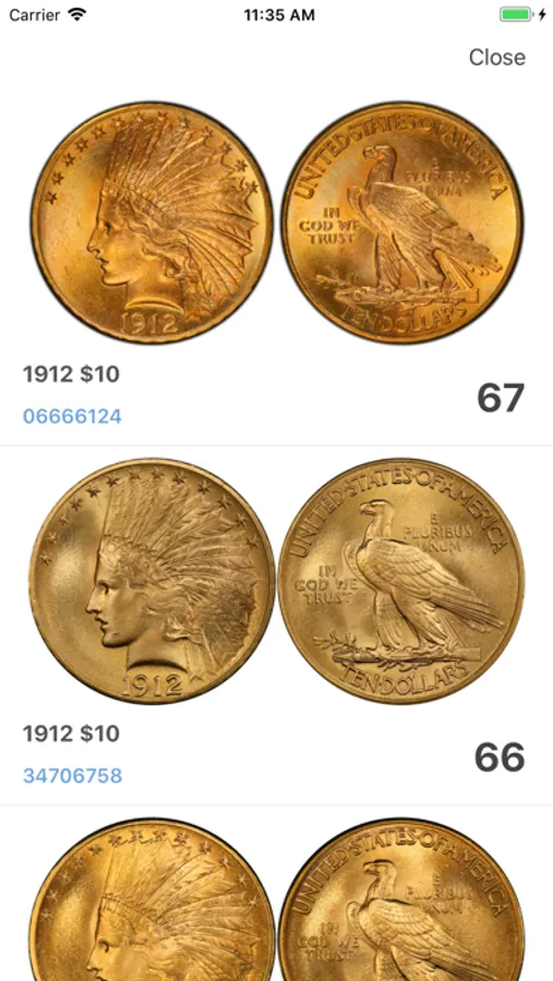 * Barcode scanning for coins graded by PCGS and NGC provides instant coin look-up functionality