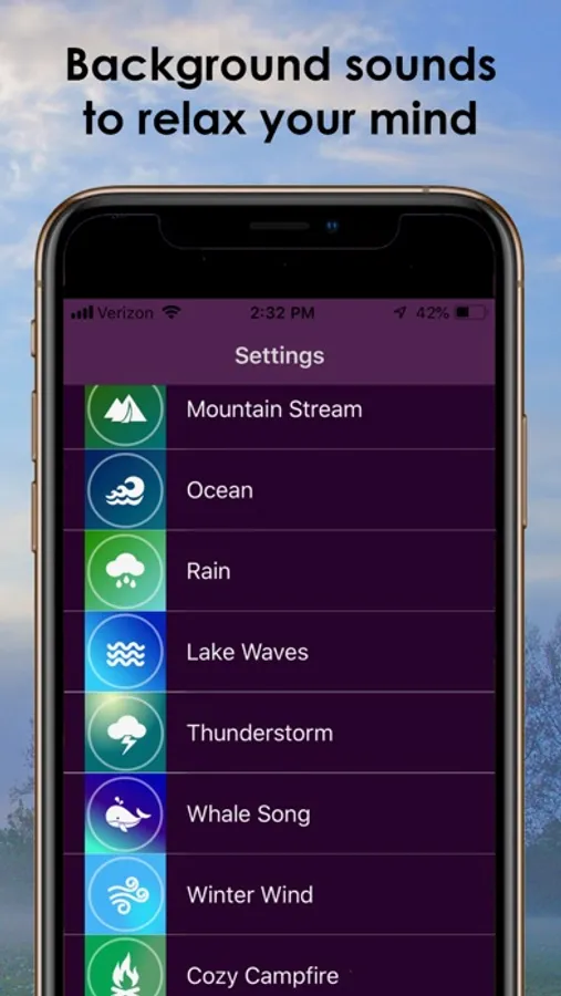 * Your choice of eight different soothing background sounds to enhance your hypnosis experience