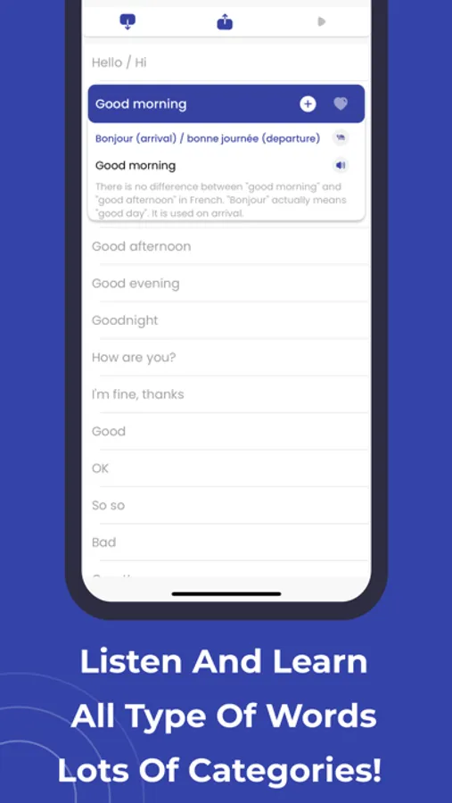 Learn French is an easy to use mobile French phrasebook that will give visitors to France and those who are interested in learning French a good start in the language. Learn French is recorded using a native speaker and we have tried our best to be authentic in the pronunciation whilst ensuring it is easy to understand. Recommended app for tourists and business people visiting France.