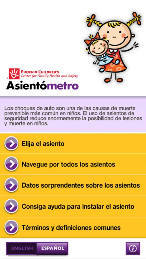 The Center for Family Health and Safety at Phoenix Children's Hospital presents the award-winning "Car Seat Helper" mobile app, an easy way to choose and recommend the right car seat for a child. Based on the guidelines published by the American Academy of Pediatrics, this free app is a great resource for parents, healthcare professionals, and caregivers.