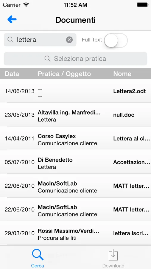 Si può effettuare una ricerca full text sui documenti, email e allegati, scaricarli e consultarli direttamente sul dispositivo.