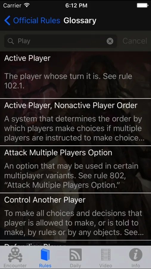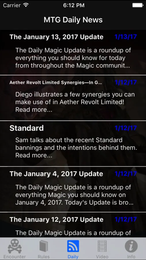 • A direct link to Wizards of the Coast’s news feed ensures you're always up to date with the latest from their news department and tournament results.
