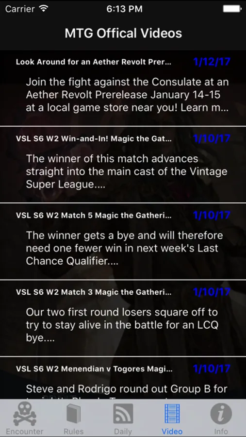 • A listing of the latest videos from Wizards of the Coast YouTube channel